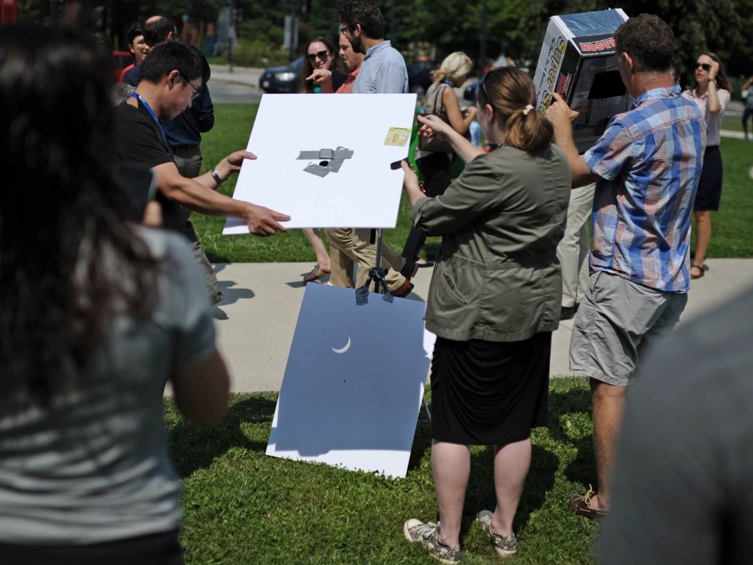 At Roshambo ArtFarm in Sheridan, Oregon, people aimed their cameras at the sky a few minutes before 10 am, as the moon slowly ate into the sun.