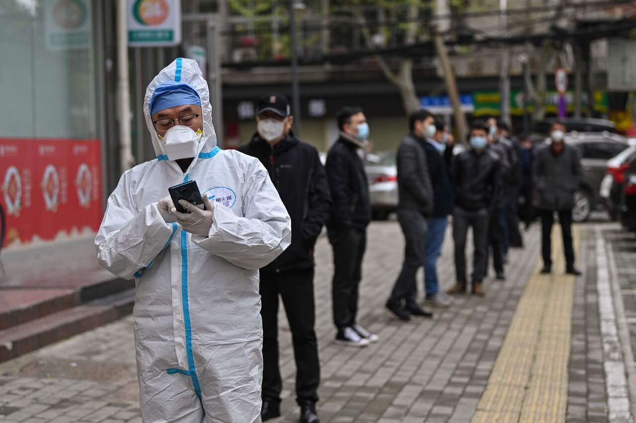 People wait to be tested for the coronavirus in Wuhan on March 30, 2020.