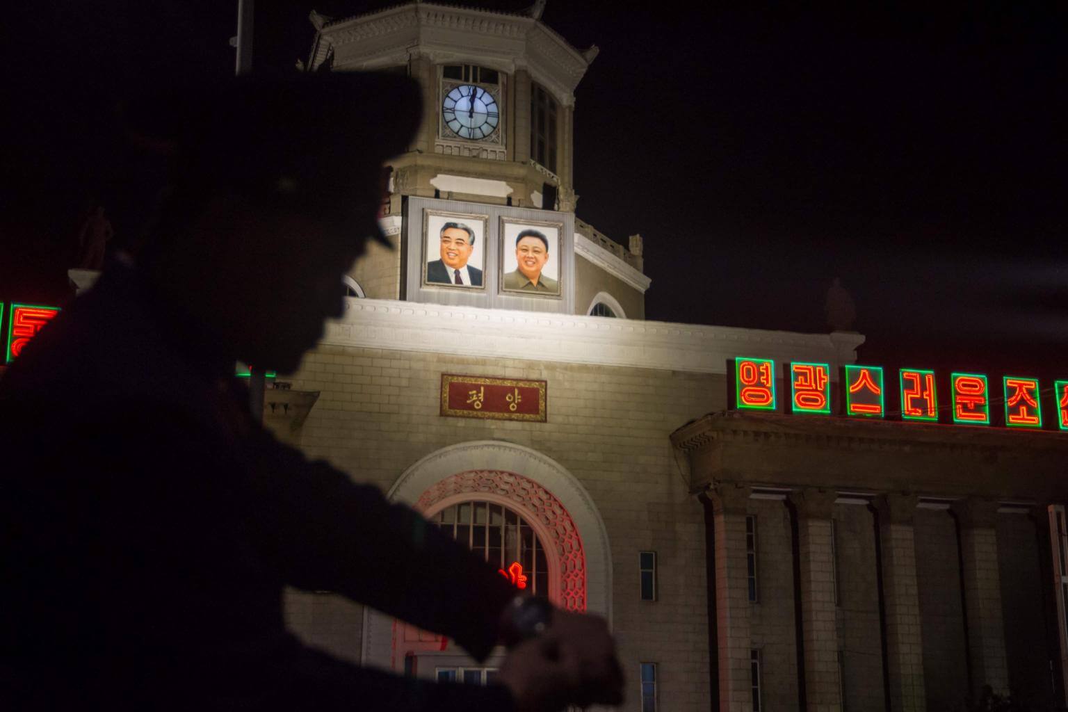 File photo taken on May 5, 2018, showing a traffic policeman checking his watch near the central railway station in Pyongyang.