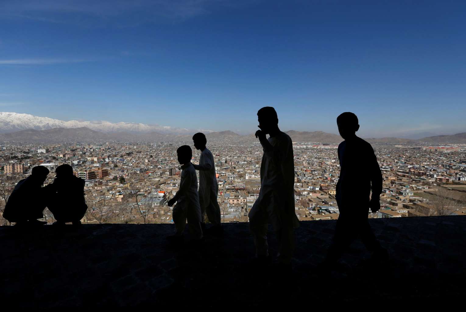 Boys walk on a hilltop during Afghan spring and new year celebrations in Kabul.