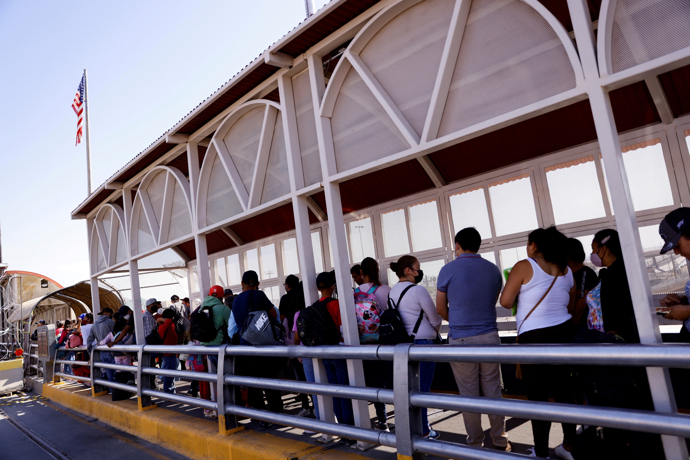 Asylum-seeking migrants queue up in Mexico to find out information about their US asylum claims.