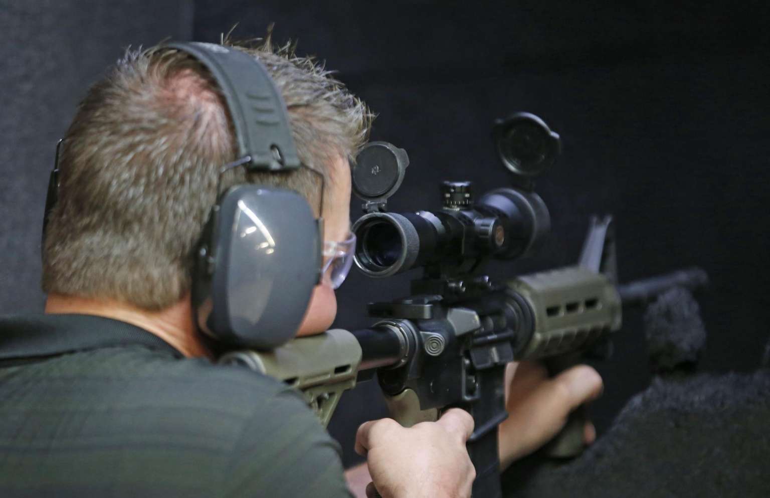 A man test fires an AR-15 semi-automatic gun on June 17, 2016, in Springville, Utah.