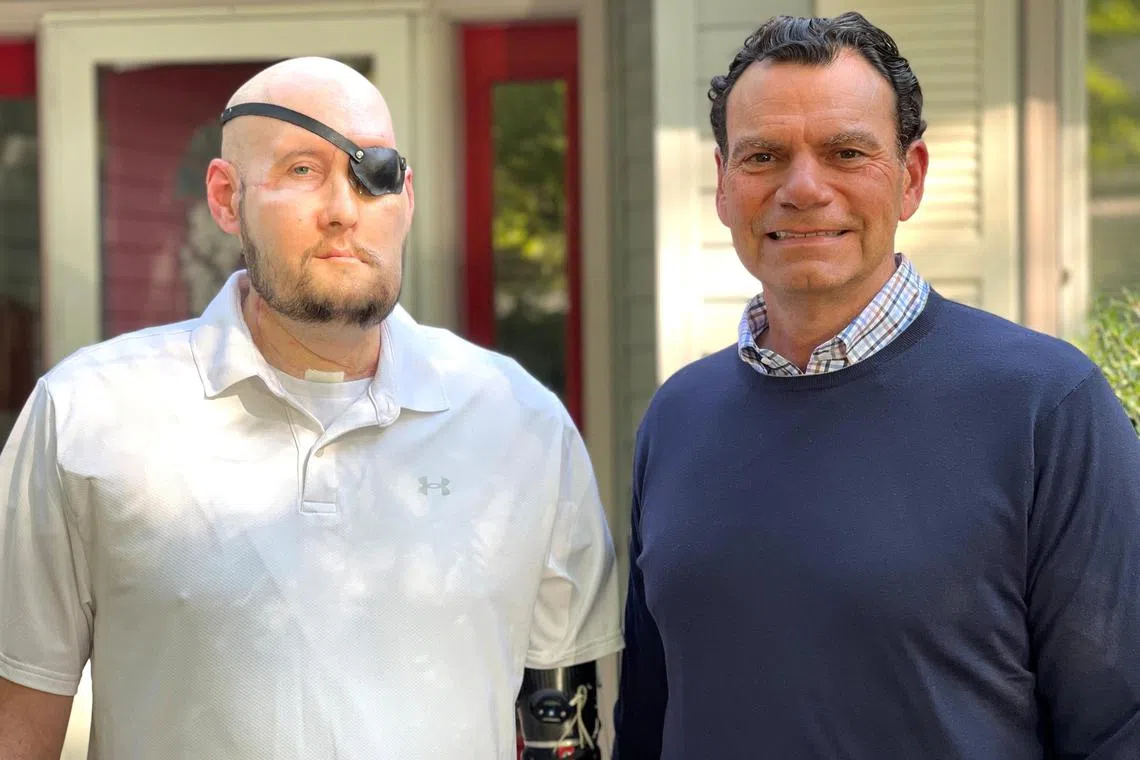 Mr Aaron James with NYU Langone’s Dr Eduardo Rodriguez, who performed the ground-breaking transplant on him.