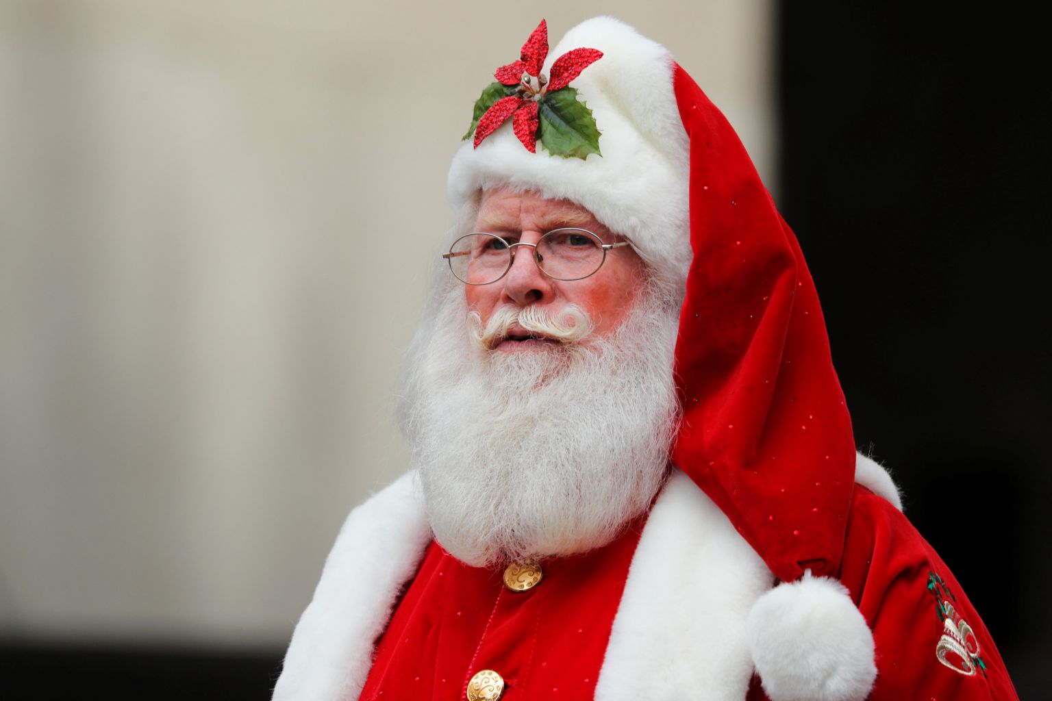 A man dressed as Santa Claus in Los Angeles on Nov 19. A woman substitute teacher at Cedar Hills School in New Jersey told her first grade students that Santa Claus is not real, leading to the school's principal apologising to parents for her actions.