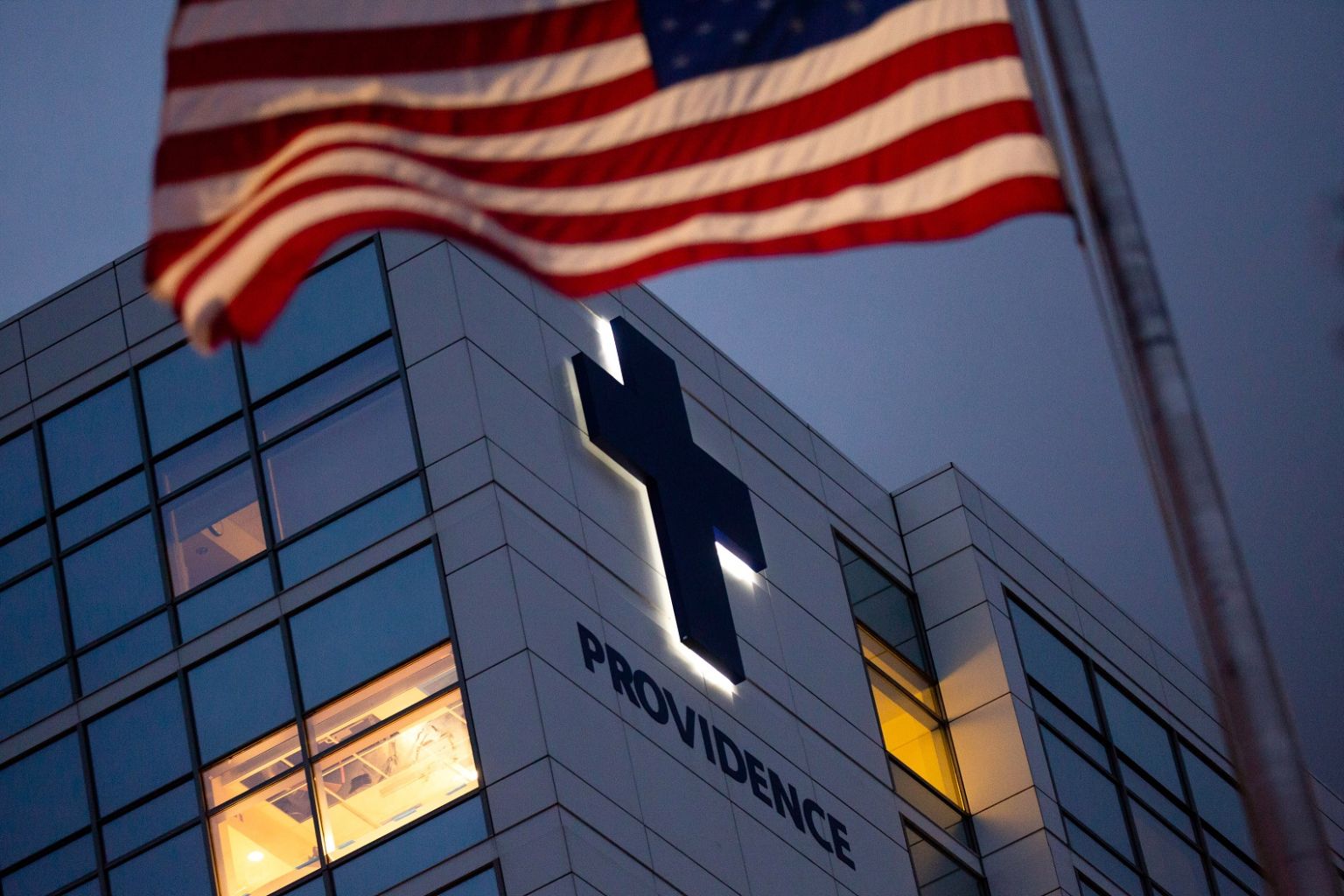 An American flag flies outside a medical centre in Washington, US.