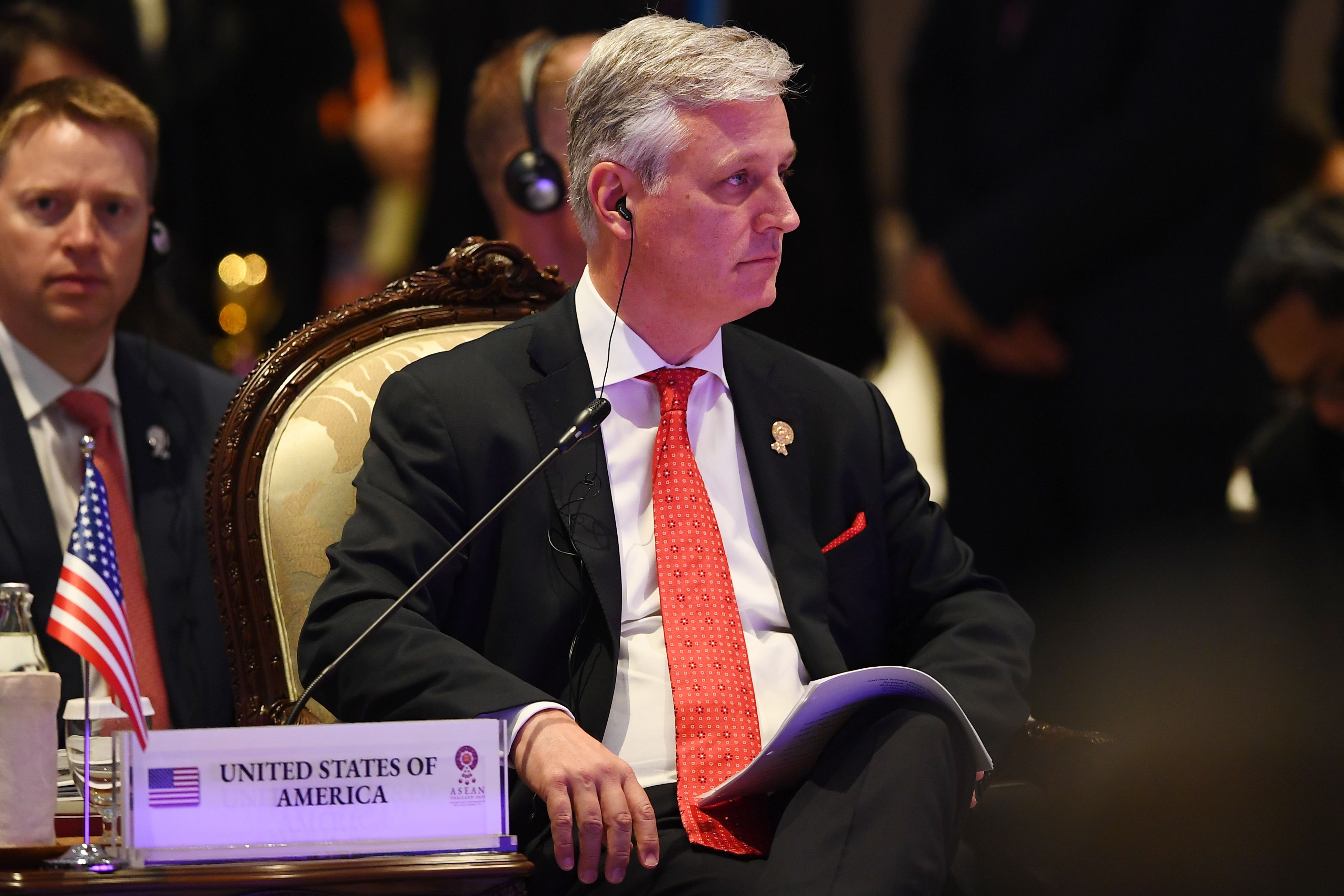 In a photo taken on Nov 4, 2019, US National Security advisor Robert O'Brien attends the 14th East Asia Summit in Bangkok, on the sidelines of the 35th Association of Southeast Asian Nations Summit.
