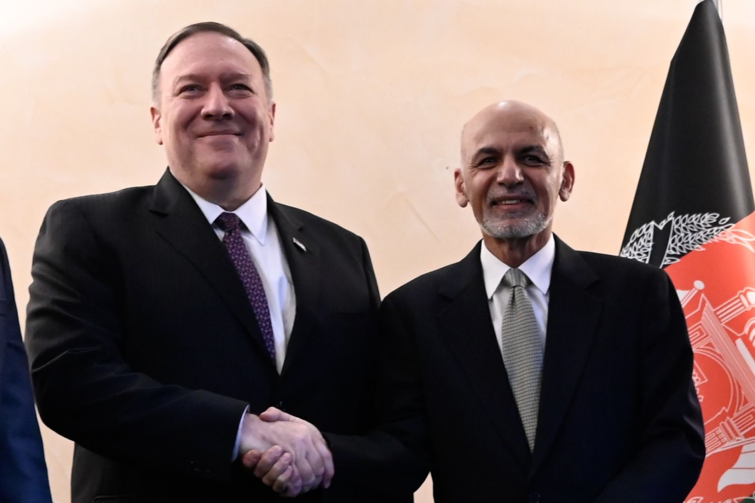 In a photo taken on Feb 14, 2020, US Secretary of State Mike Pompeo (left) shakes hands with Afghan President Ashraf Ghani during the Munich Security Conference in Munich, southern Germany.