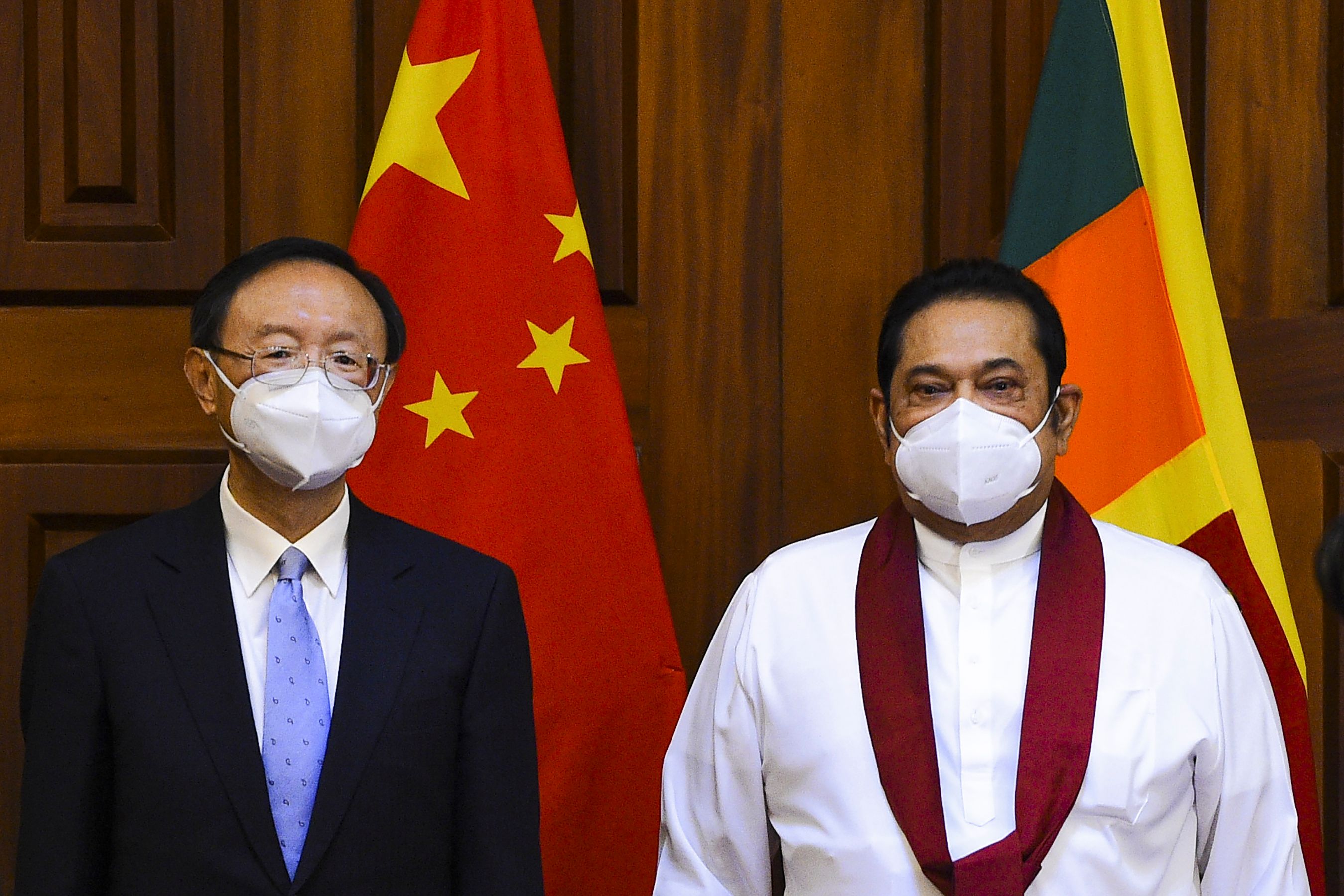 Sri Lanka's Prime Minister Mahinda Rajapaksa (right) and China's director of the Central Foreign Affairs Commission Office, Mr Yang Jiechi, at a meeting in Colombo, Sri Lanka, on Oct 9, 2020.