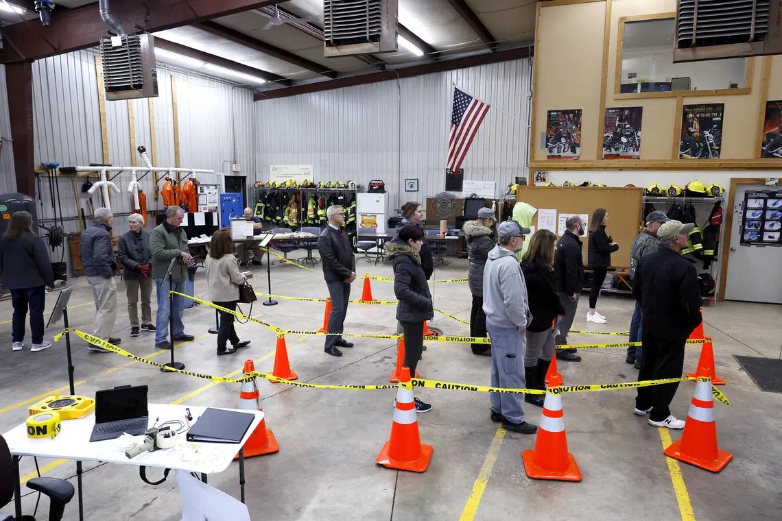 Voters queueing at a polling station in Oshkosh, Wisconsin, on Nov 8.