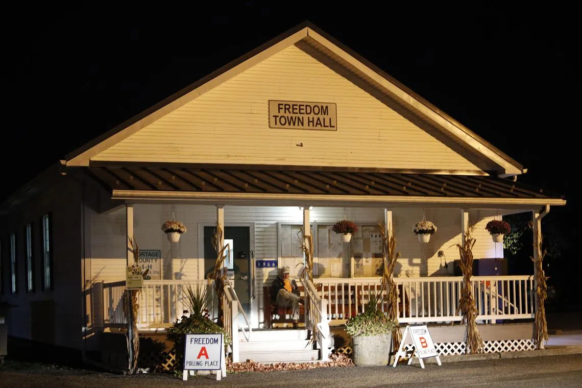 Freedom, Ohio, resident James Madden waiting for the polls to open on the porch of his polling location at the Freedom Town Hall on Nov 8.