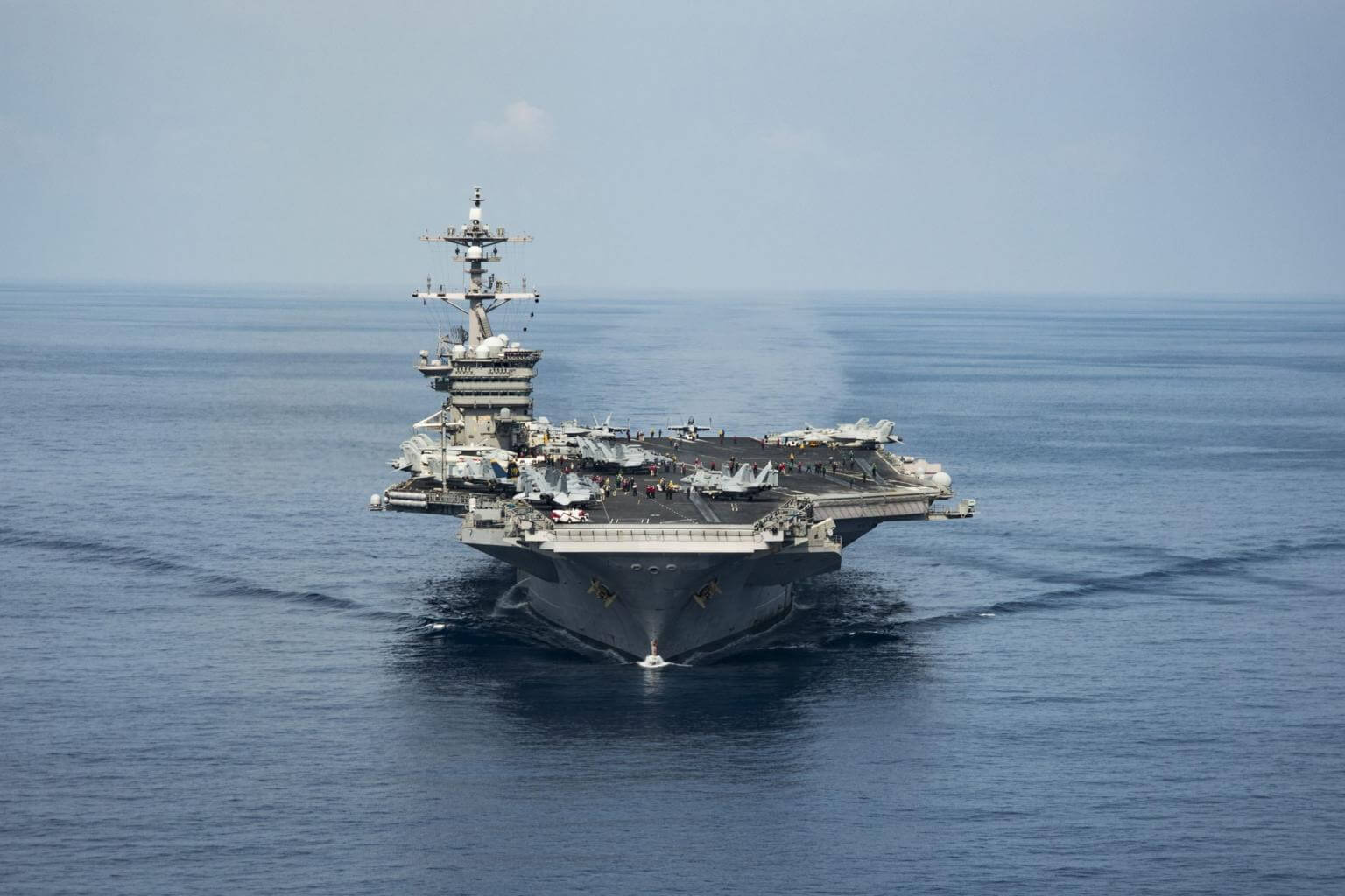 The exercises - also involving a US guided-missile cruiser and guided-missile destroyer - are being held in the Philippine Sea, the navy said, as the naval strike group "continued its northern transit in the Western Pacific".