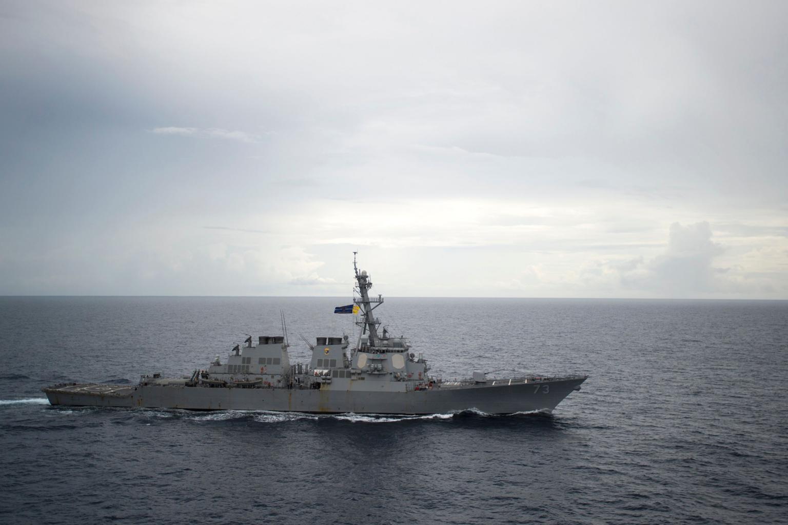 WASHINGTON (AFP) - An American warship has sailed through waters off the contested Spratly Islands in the South China Sea, the Pentagon said on Sunday (Sept 30), in the latest implicit challenge to Beijing's sweeping territorial claims in the region.