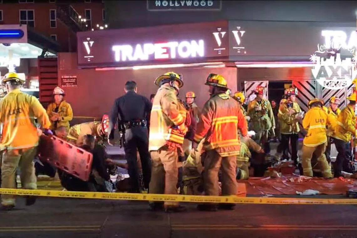 Members of emergency services work at the scene outside a nightclub on Santa Monica Boulevard, Los Angeles.