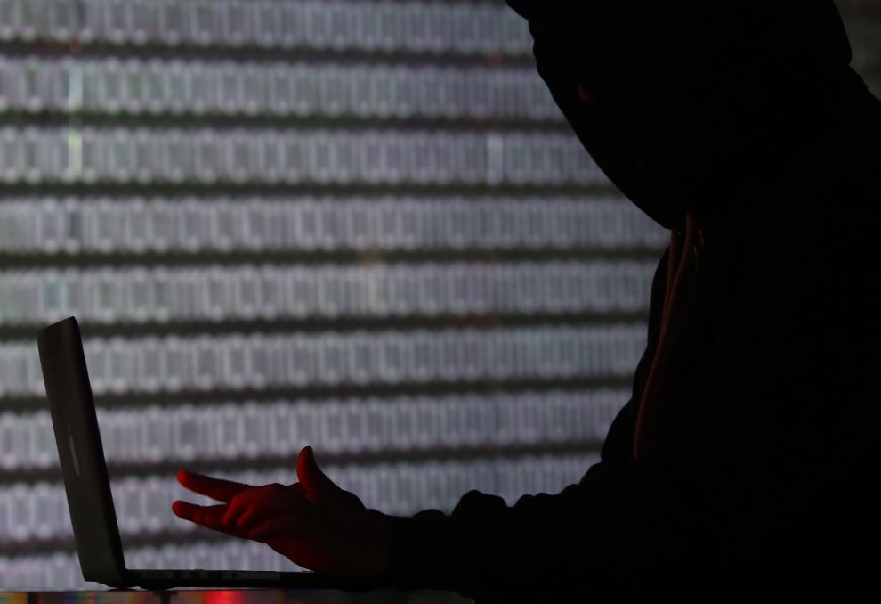 A man is seen profiled in silhouette whilst working on a laptop computer in London, UK, on Dec 23, 2015.