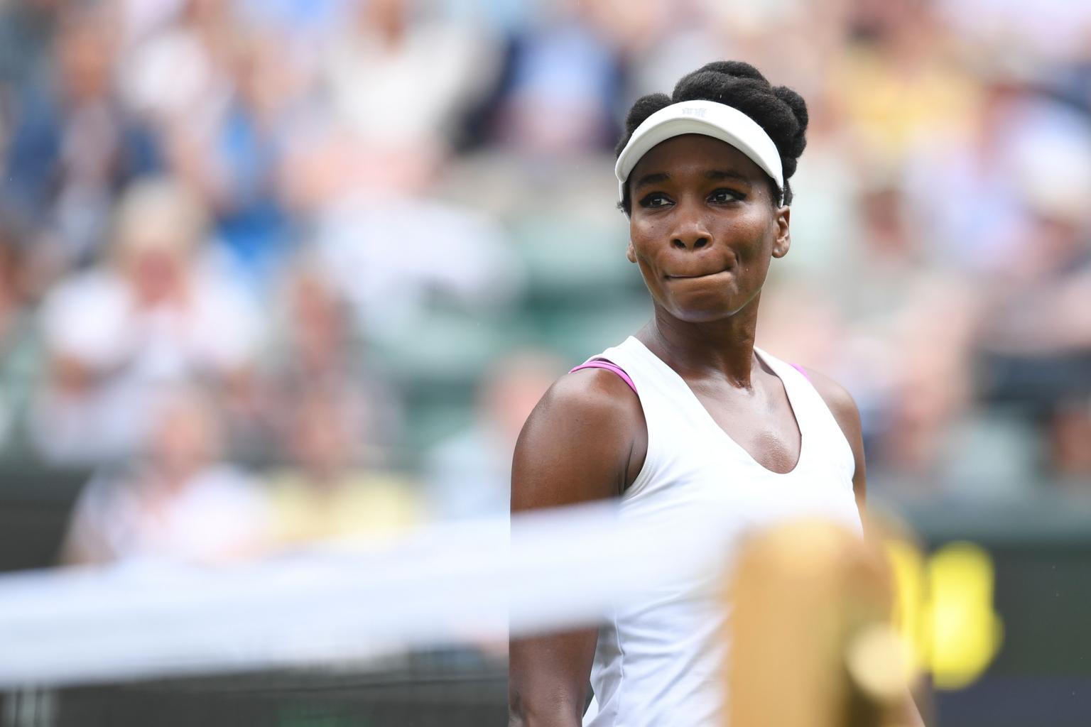 Venus Williams reacts on the first day of the 2017 Wimbledon Championships, on July 3, 2017.