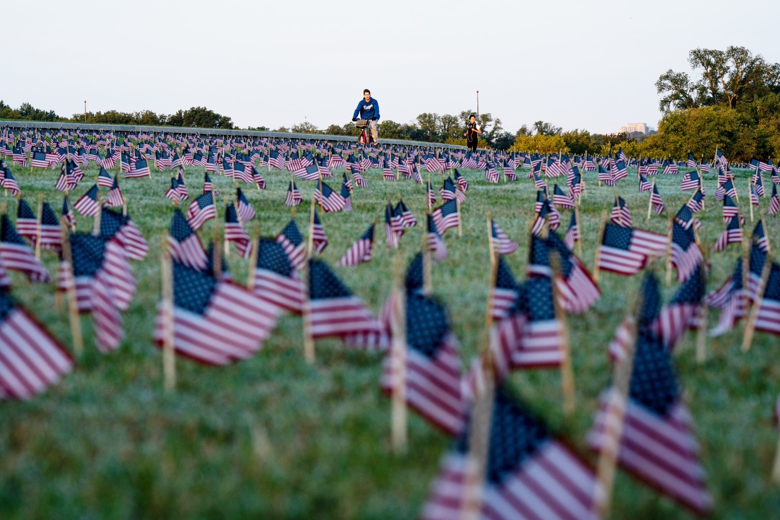 American flags planted around the Washington Monument near the White House on Tuesday, honouring the more than 200,000 lives lost so far in the United States due to the Covid-19 pandemic. The Institute for Health Metrics and Evaluation projects a most likely scenario of 380,000 total deaths by Jan 1 next year.