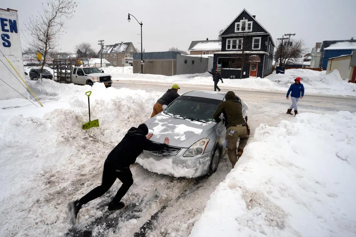 Residents help to push out a car along South Park Avenue in Buffalo, New York, on Dec 27, 2022.