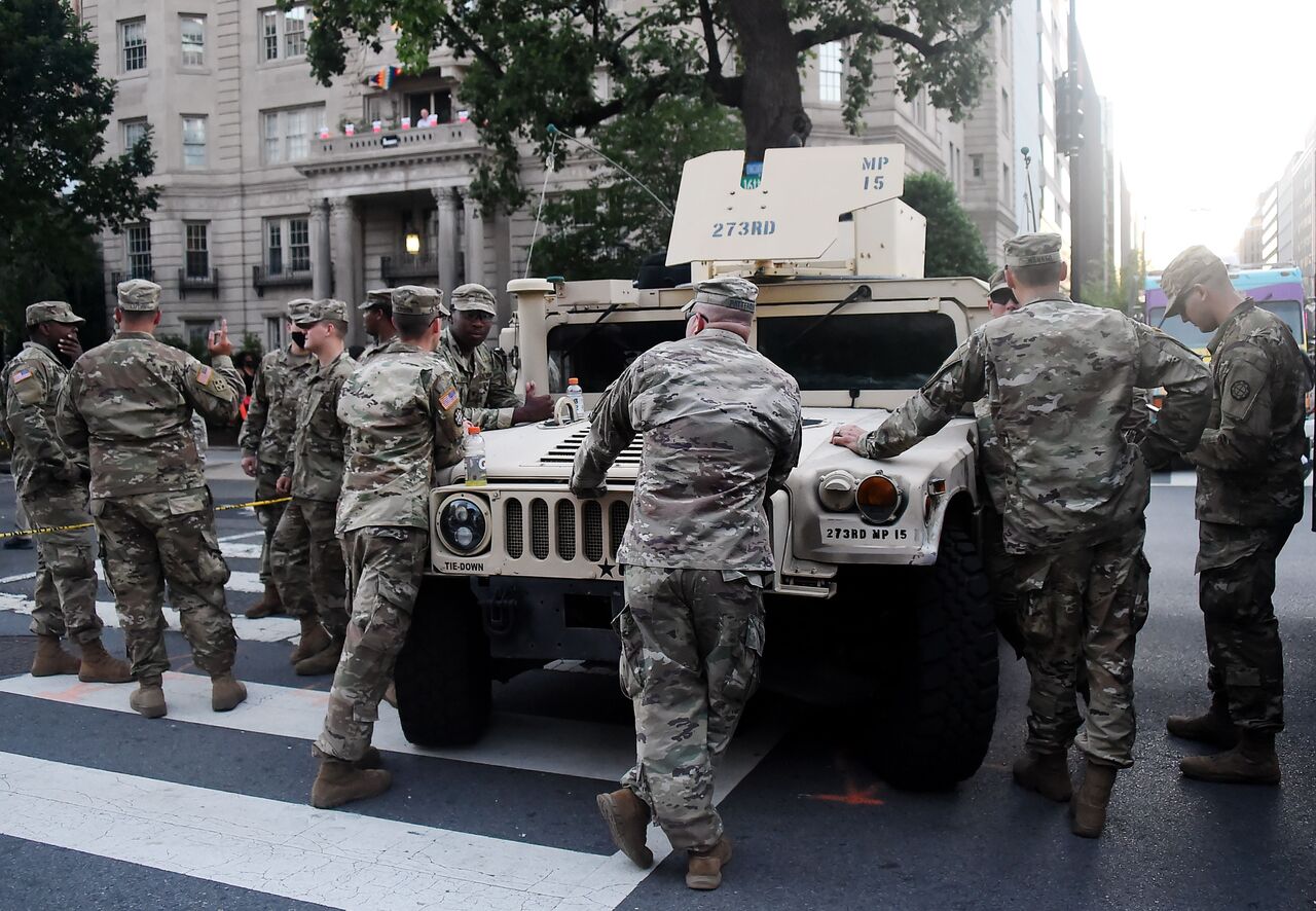 Members of the US National Guard stand near the White House during protests in Washington on June 7, 2020.