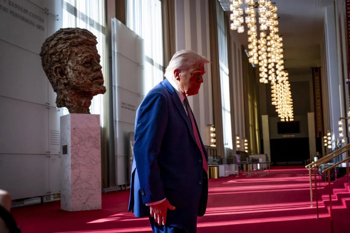 US President Donald Trump tours the John F. Kennedy Center for the Performing Arts in Washington, on March 17.