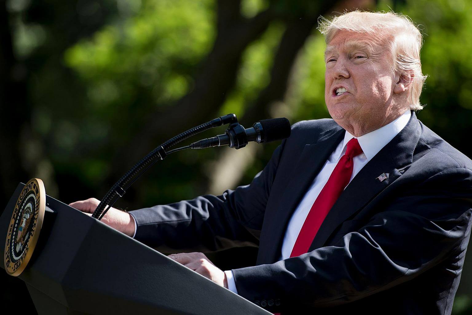 President Trump announcing his decision to withdraw the US from the Paris Climate Accords in the Rose Garden of the White House in Washington, DC, on June 1, 2017.
