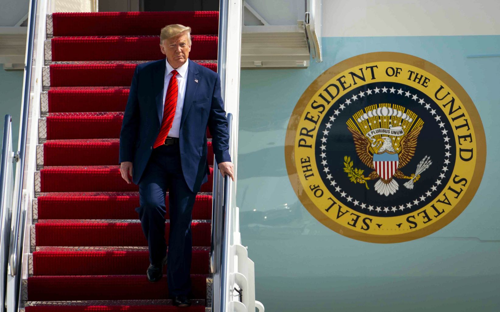 Trump walks off Air Force One at Joint Base Andrews in Maryland after a flight from New York.