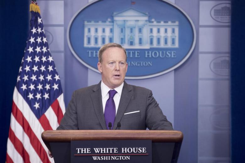 White House spokesman Sean Spicer on Monday (July 17) repeated allegations that a Democratic operative had met Ukrainian embassy officials during the campaign.