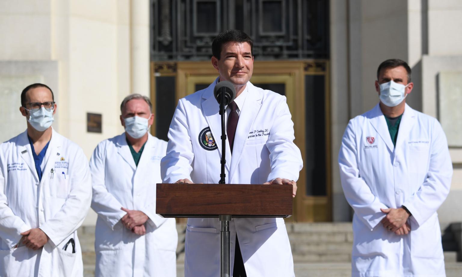 White House physician Sean Conley during an update on US President Donald Trump at Walter Reed Medical Center on Oct 5, 2020.
