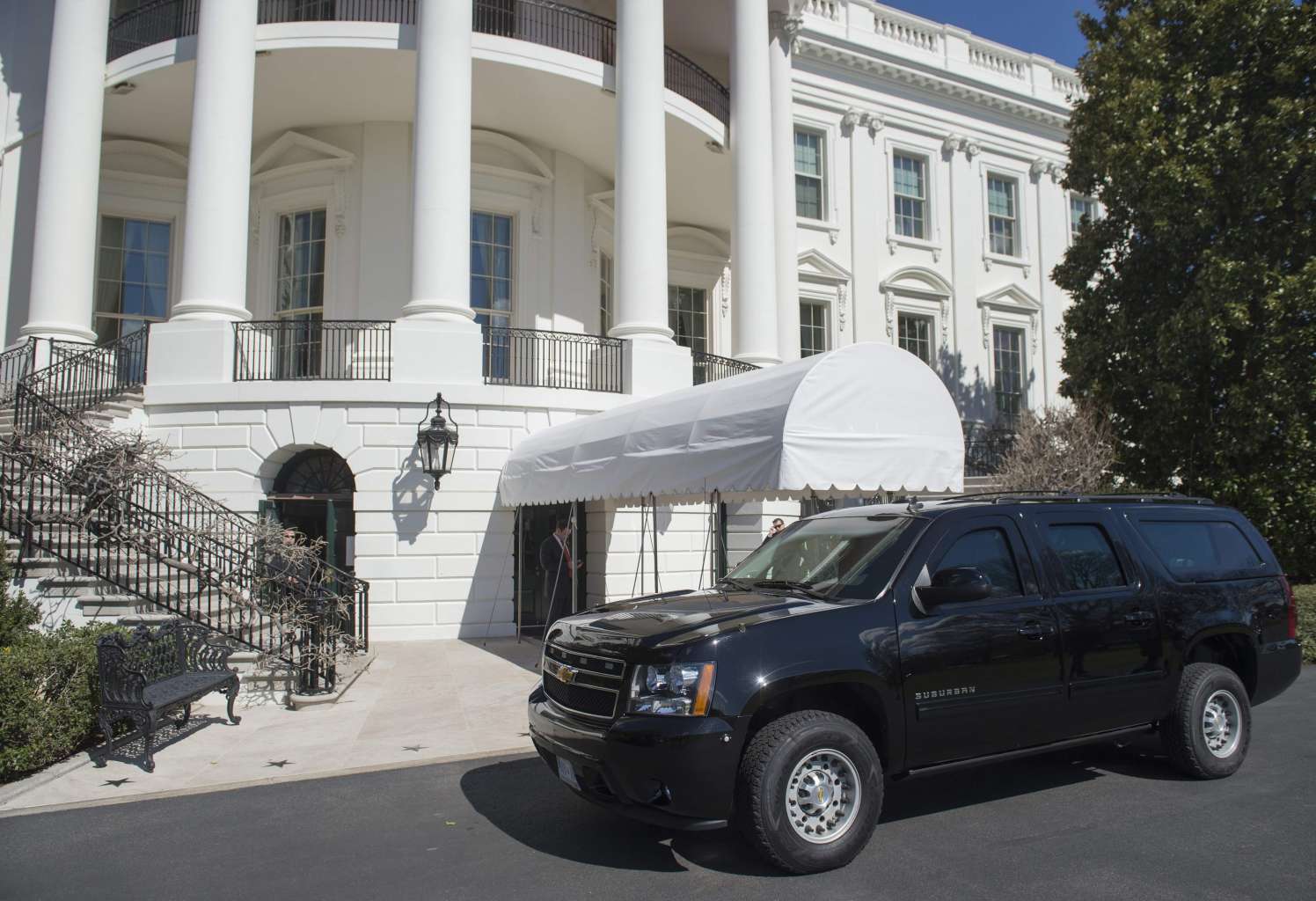 An SUV parked outside of the South Portico on the South Lawn of the White House in Washington, on March 11, 2017.