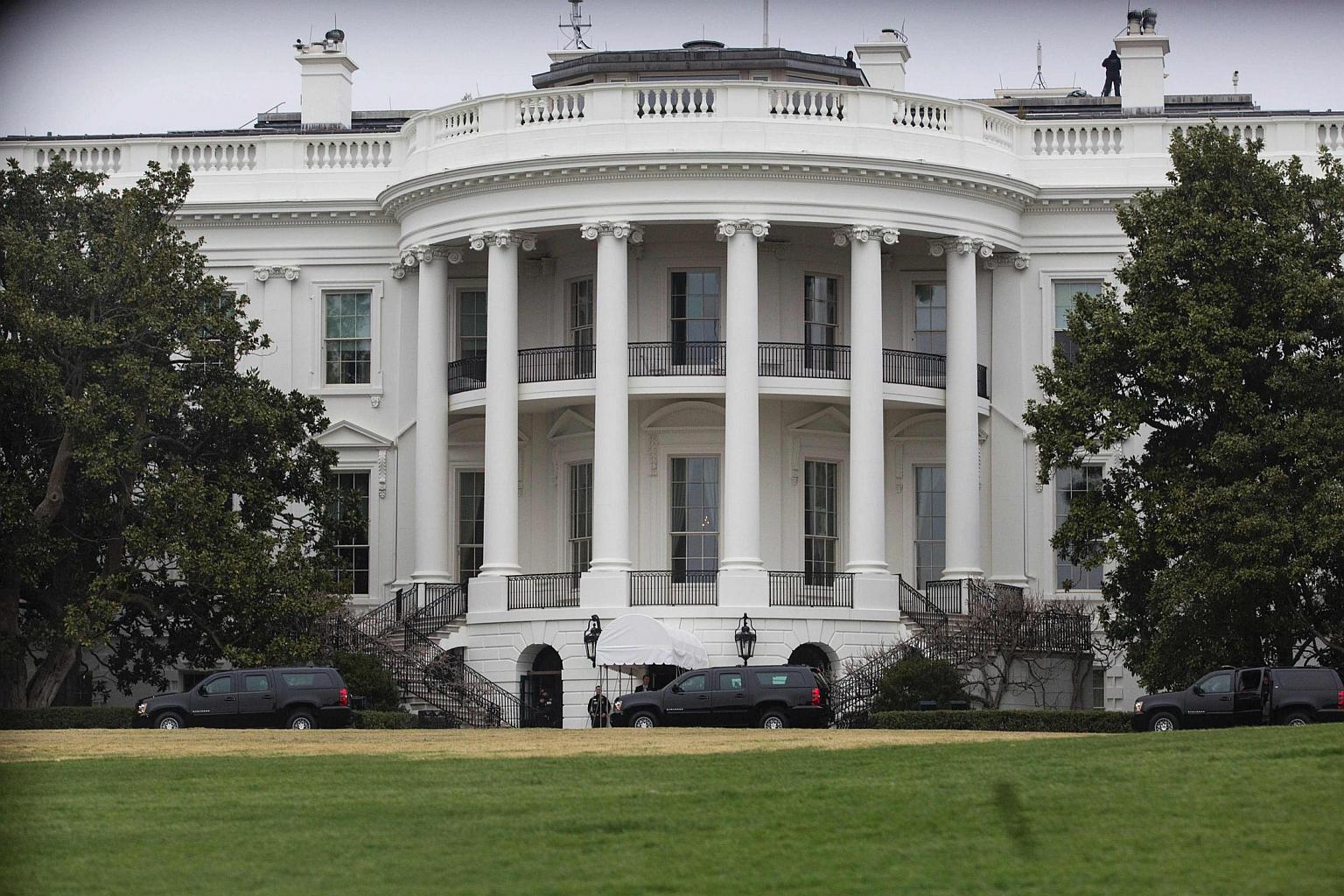 US President Donald Trump's motorcade arrives at the White House.