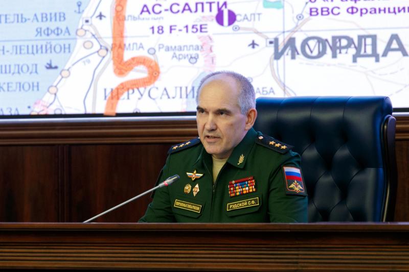 Chief of the Main Operational Directorate of the General Staff of the Russian Armed Forces, Lieut. Gen. Sergei Rudskoy addressing the media during a briefing on the situation in Syria at the Russian National Defense Management Center in Moscow, Russia, on April 14, 2018.