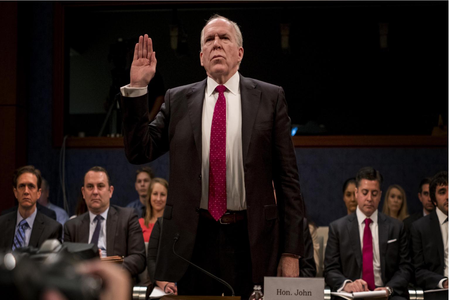 Former CIA director John Brennan testified before the House Intelligence Committee on the Russia investigation in Washington, DC.