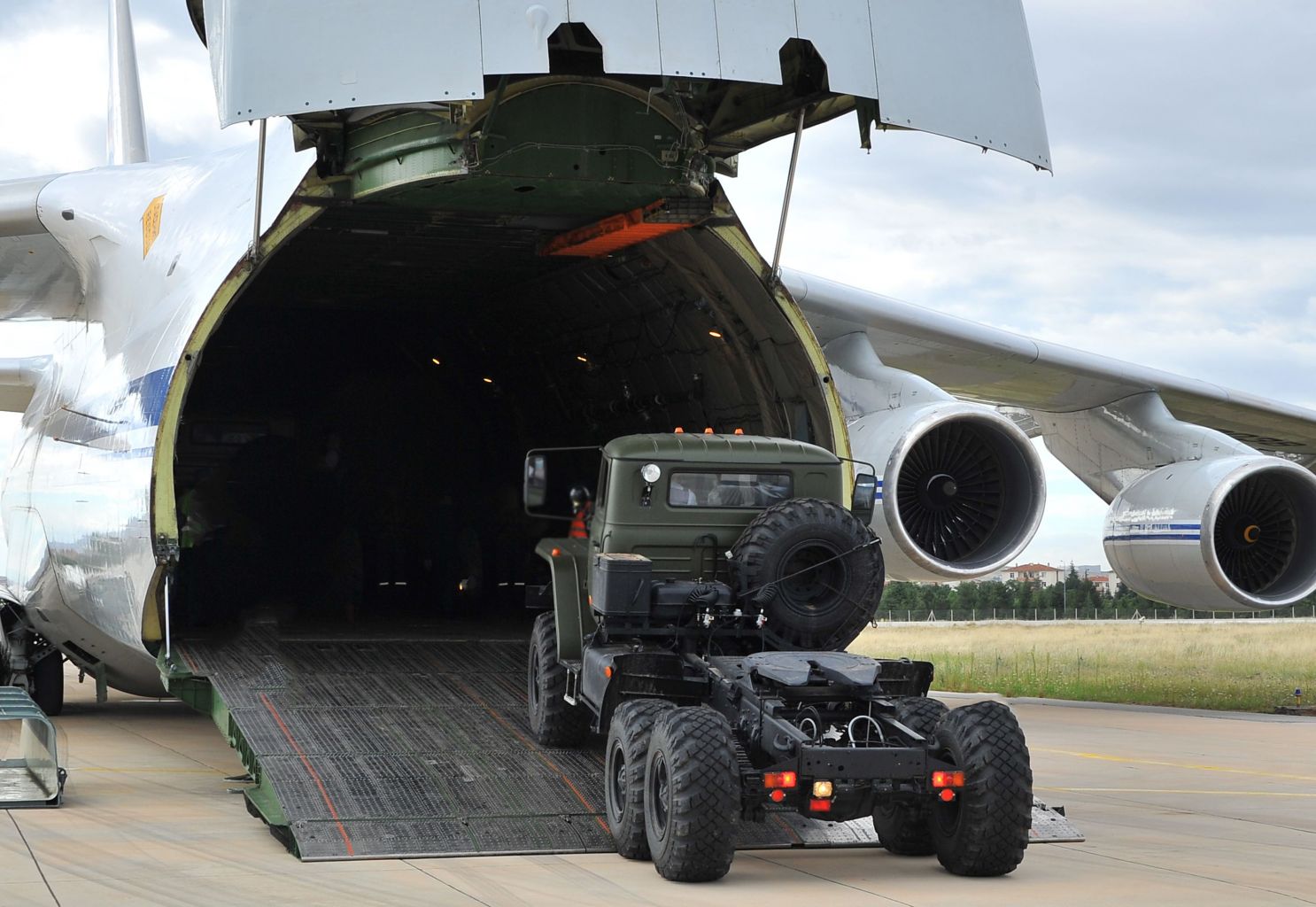 Russia's S-400 missile defence system arrives in Turkey aboard a military cargo plane.
