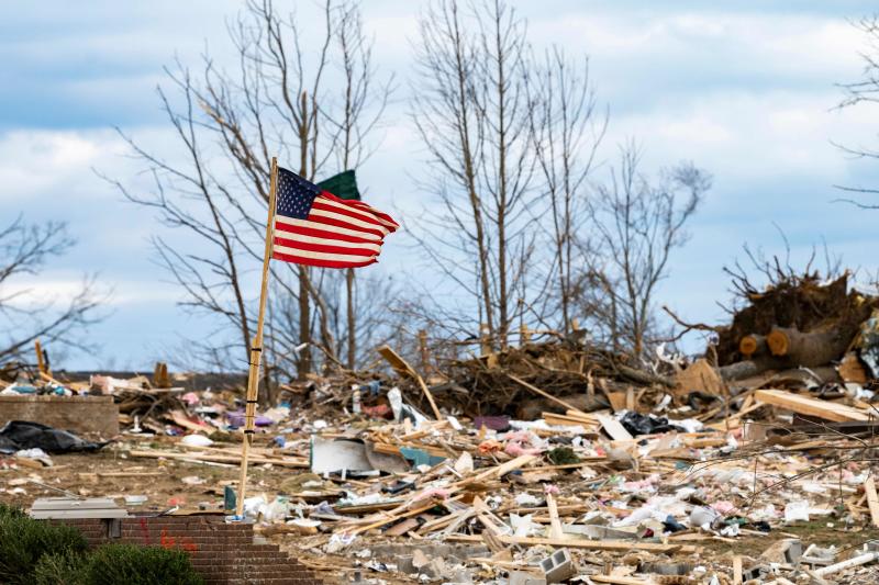 The aftermath of damage from a tornado is seen in Tennessee on March 6, 2020.