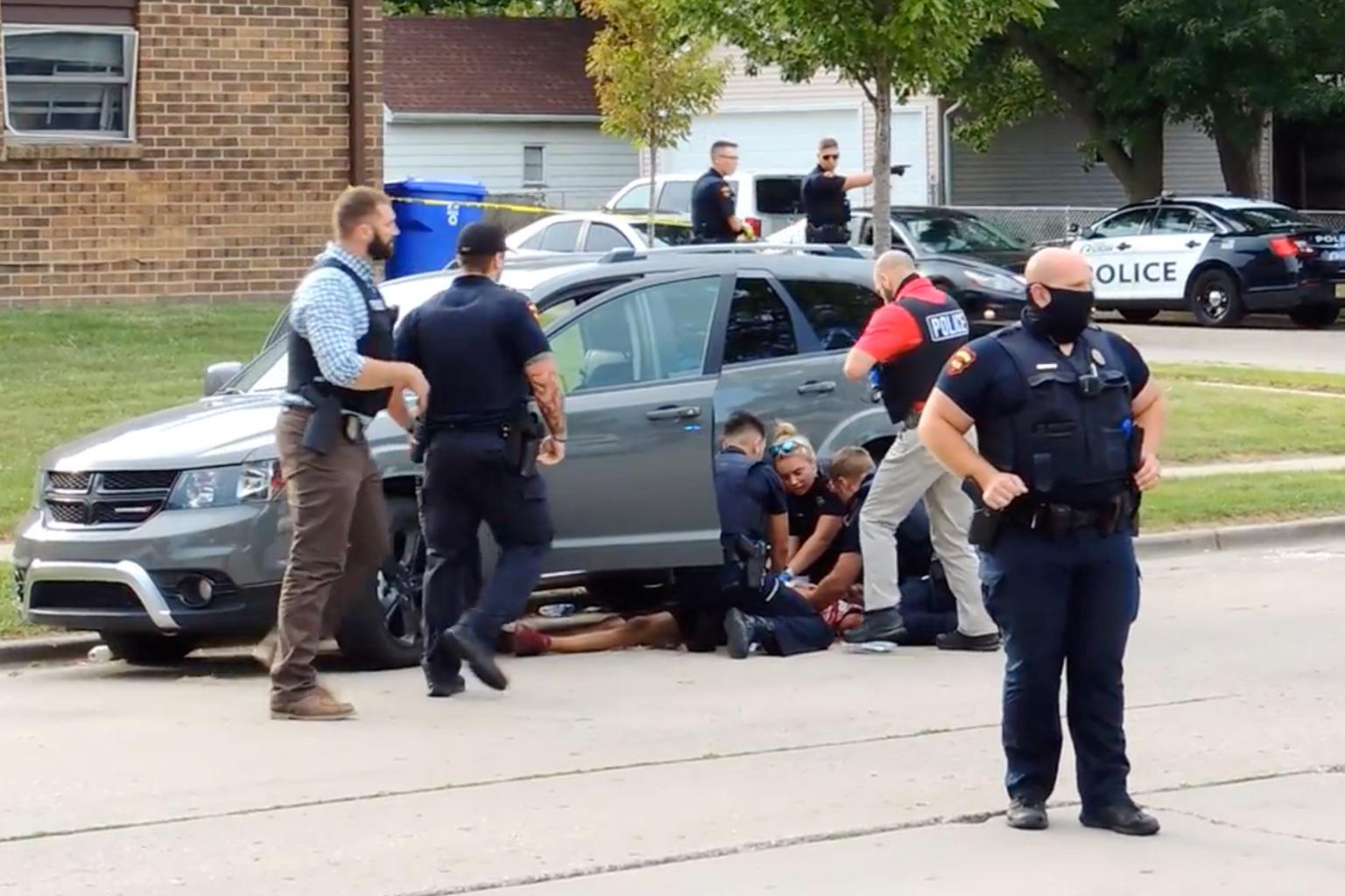 Jacob Blake lies on the street following a police shooting in Kenosha, Wisconsin, on Aug 23, 2020.