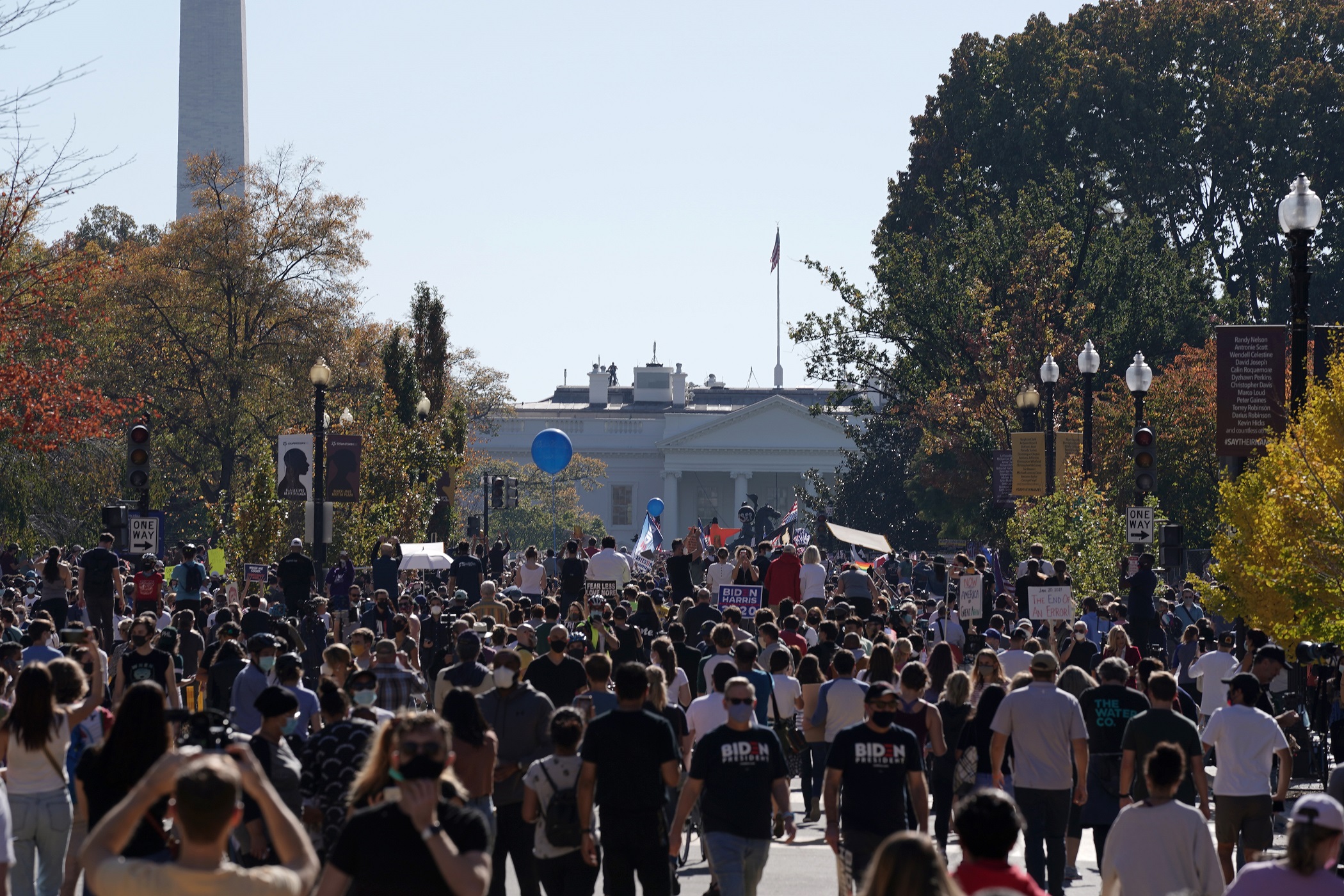 People march towards the White House after it was announced that Joe Biden was elected the 46th president of the US.
