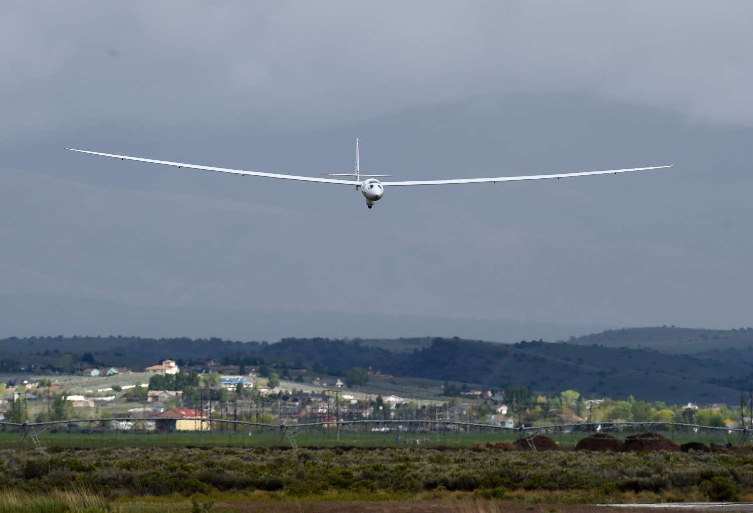 The Airbus Perlan 2 returns to the landing strip following a test flight at Minden-Tahoe Airport in Nevada.