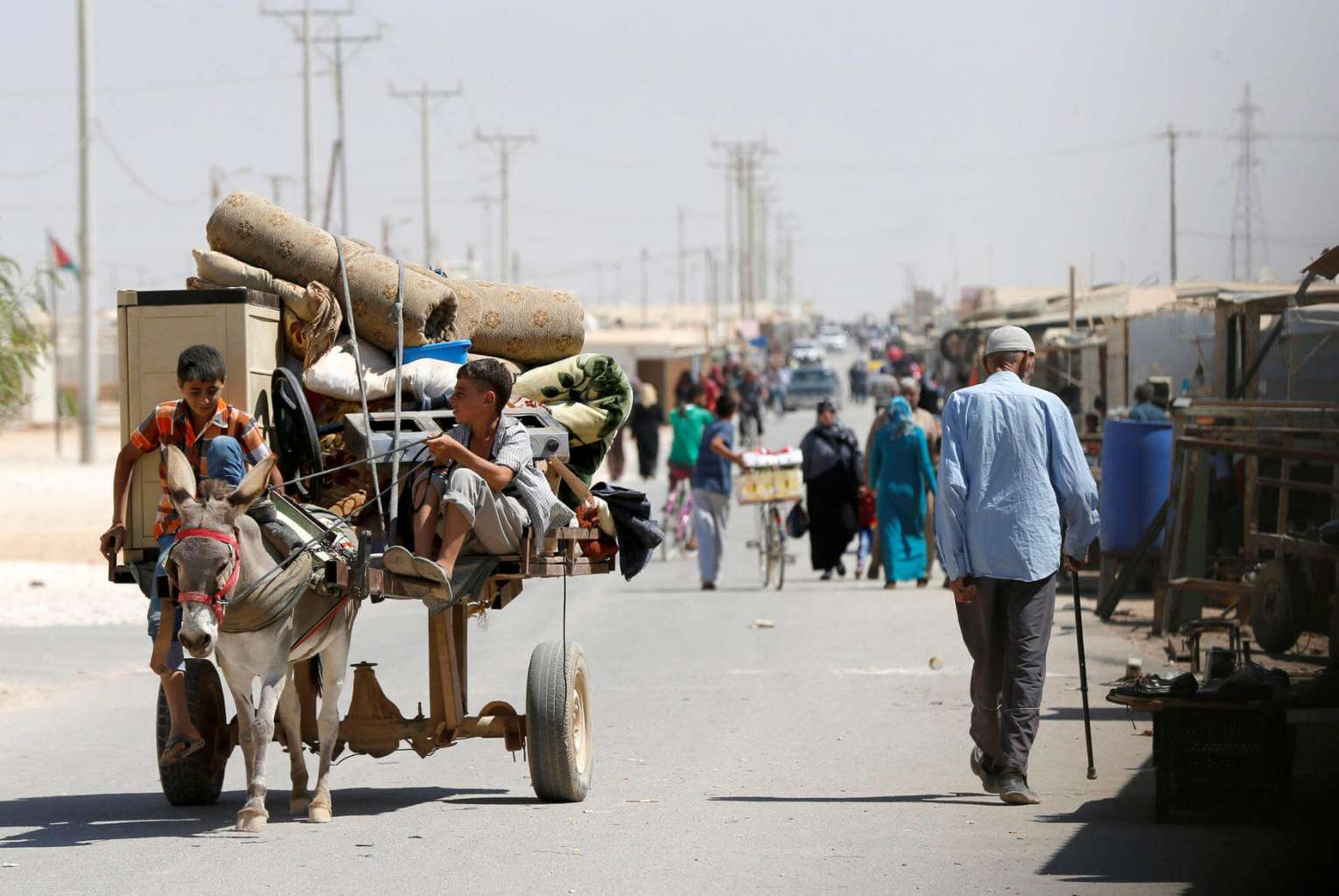 Syrian refugee children ride on a donkey-drawn cart in the Jordanian city of Mafraq. A summit to address the biggest refugee crisis since World War II opens at the United Nations on Monday (Sept 19).