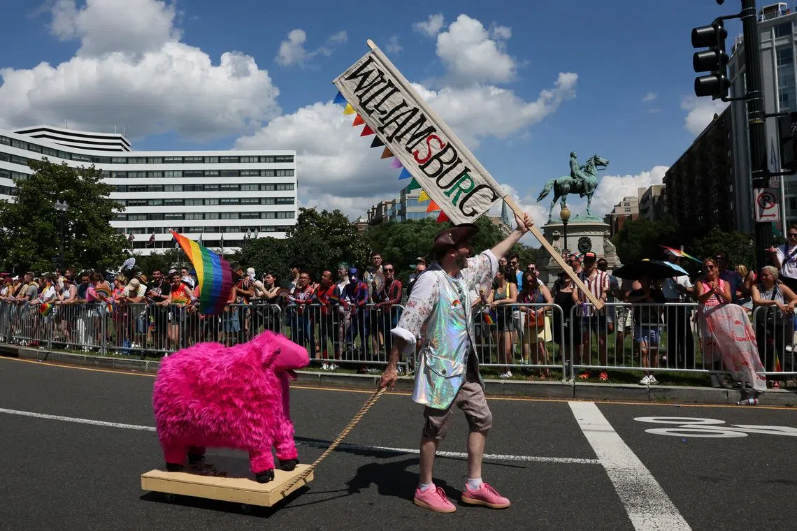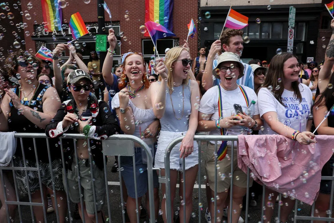 The parade route was lined with members of the LGBTQ+ community and allies like Ms Carrie Blanton, a 58-year-old school teacher from Broken Arrow, Oklahoma, who was attending her first event for LGBTQ+ rights, saying her religious beliefs previously kept her from showing support.