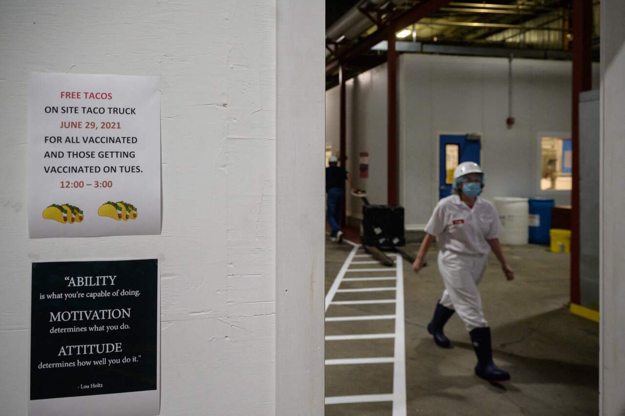 A sign encouraging employees to get vaccinated against Covid-19 at the Vermont Creamery on June 29, 2021.