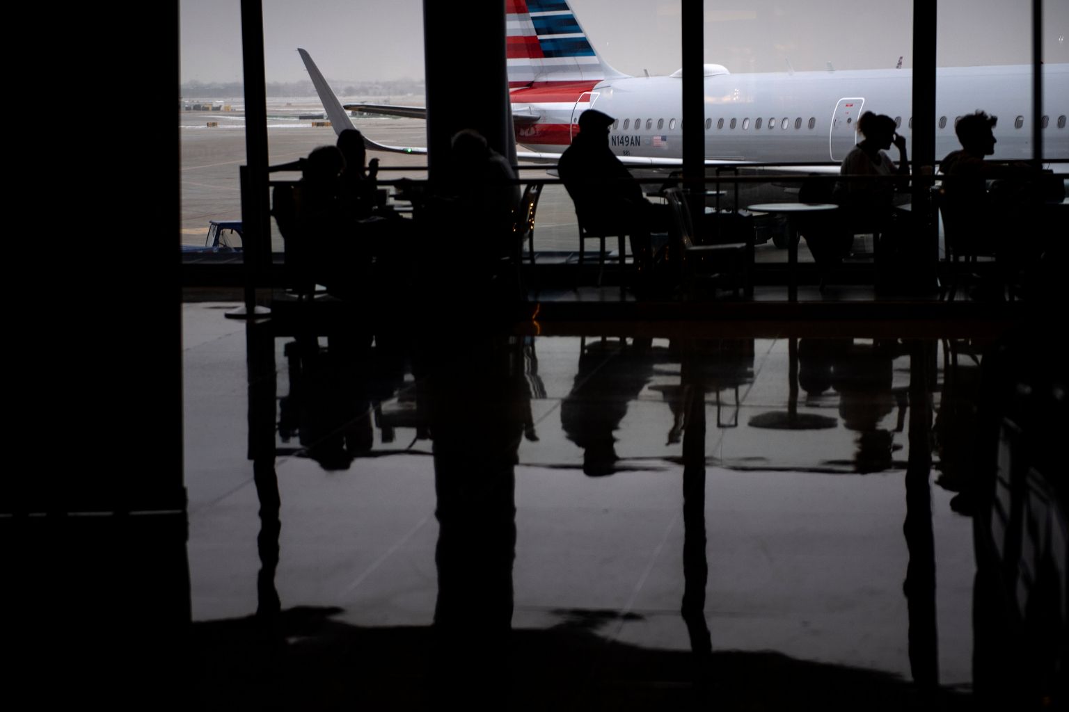 An American Airlines plane is seen as passengers wait at Chicago O'Hare International Airport in the US. The airline has announced flight cancellations but only from Feb 9 through March 27 and only its service from Los Angeles.