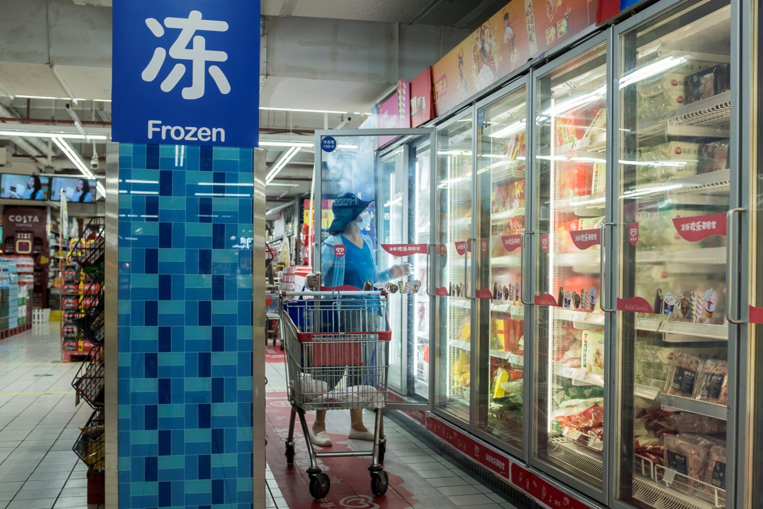 A woman looks at frozen food products in a supermarket in Beijing, China, on Aug 13, 2020.