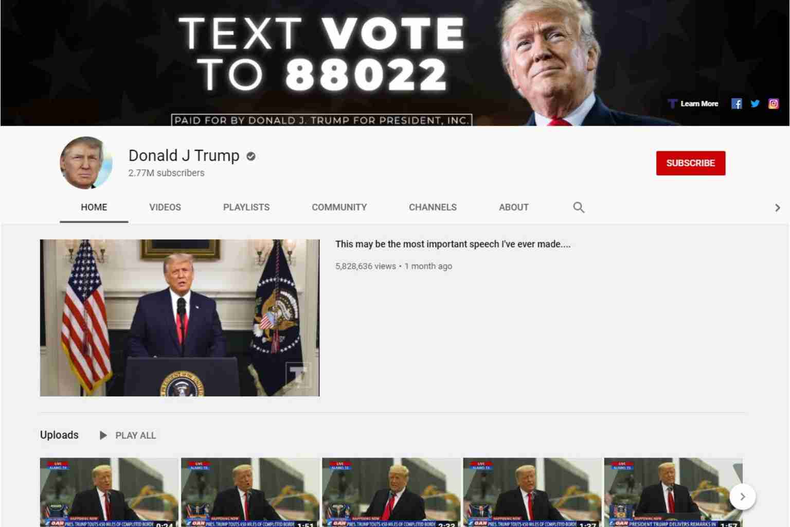 During his presidency, Trump has used YouTube differently from Twitter or Facebook. His YouTube channel is filled mostly with clips from speeches and rallies, as well as videos of supporters defending him on Fox News.