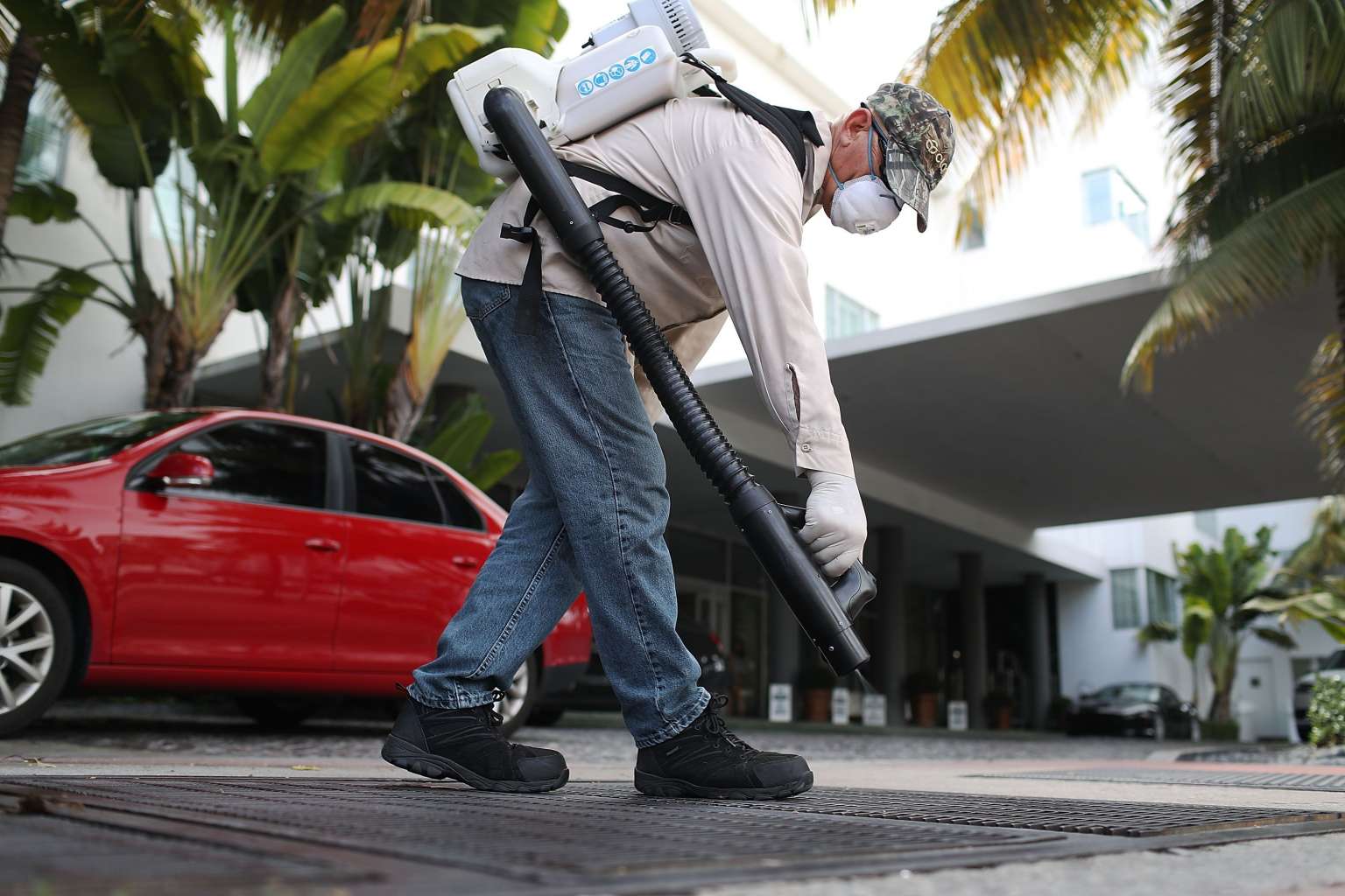 A mosquito control inspector prepares to spray a storm drain on Aug 24, 2016, in Miami Beach, Florida, which has suffered a Zika outbreak.