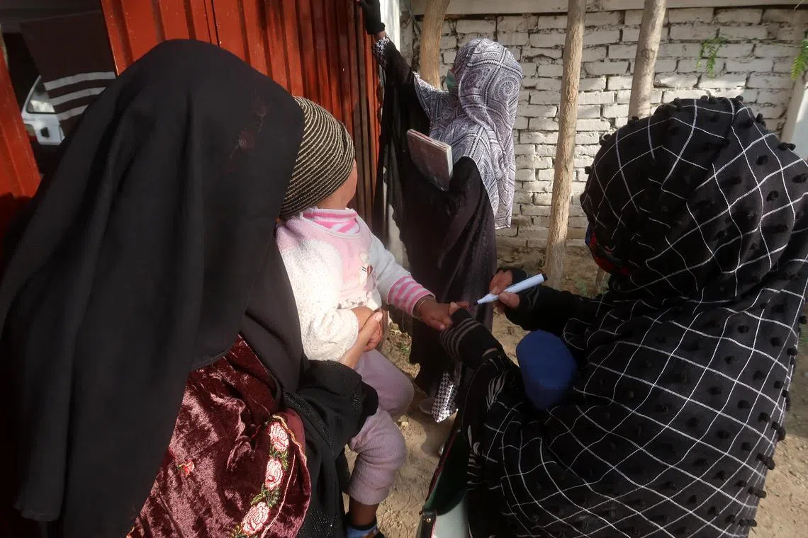 A Pakistani health worker marking a child after administering polio vaccine drops during a polio vaccination campaign in Quetta, Pakistan.