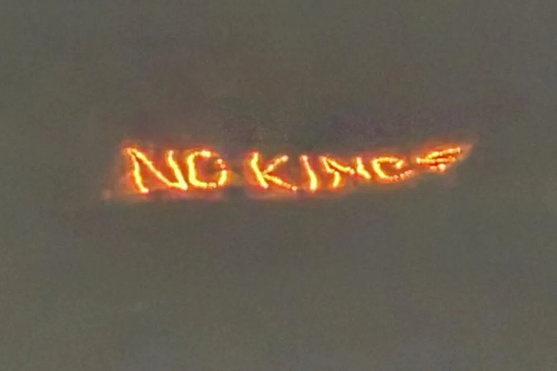 A lit-up sign put up over Davos reads “No Kings”, referring to a US protest slogan.