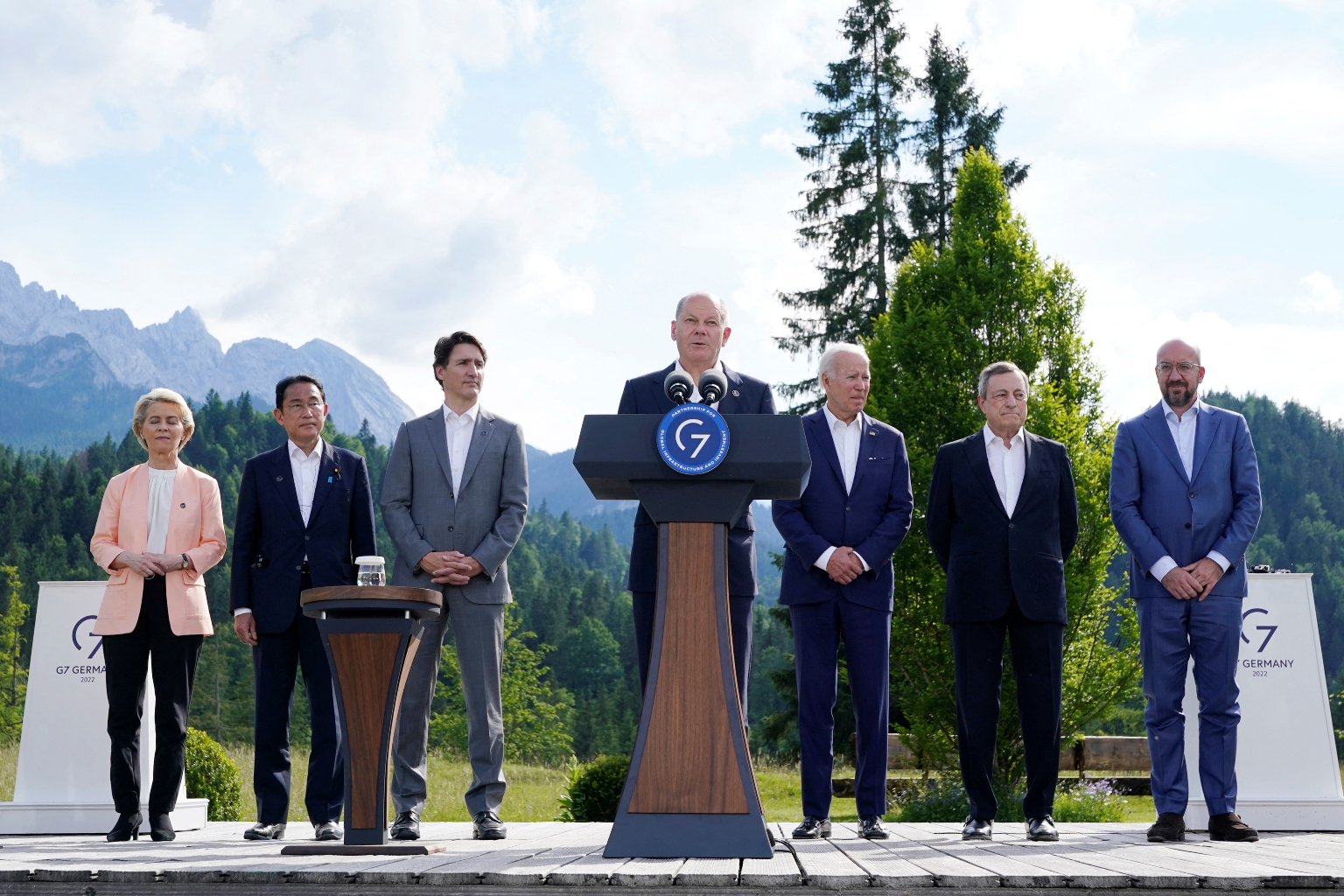 German Chancellor Olaf Scholz speaks as G-7 leaders gather in Elmau, Germany, on June 26, 2022.