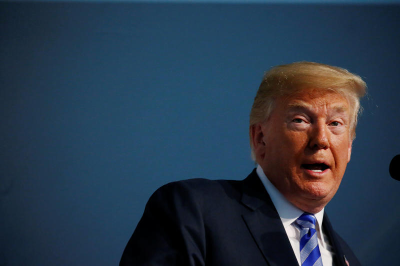 US President Donald Trump participates in the US Coast Guard Change-of-Command ceremony at the US Coast Guard Headquarters in Washington on June 1, 2018. REUTERS