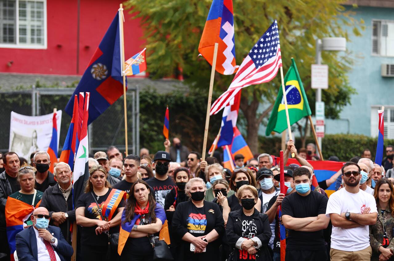 Marchers also gathered in Los Angeles, home to one of the largest Armenian communities in the world, to mark the day with Armenian flags and calls for accountability.