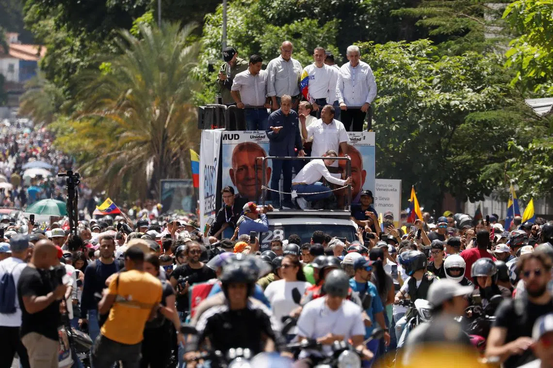 Elsewhere, opposition supporters marched to demand justice, buoyed by the presence of leader Maria Corina Machado, who emerged from hiding on Aug 3 to join her demonstrations on the streets of Caracas.