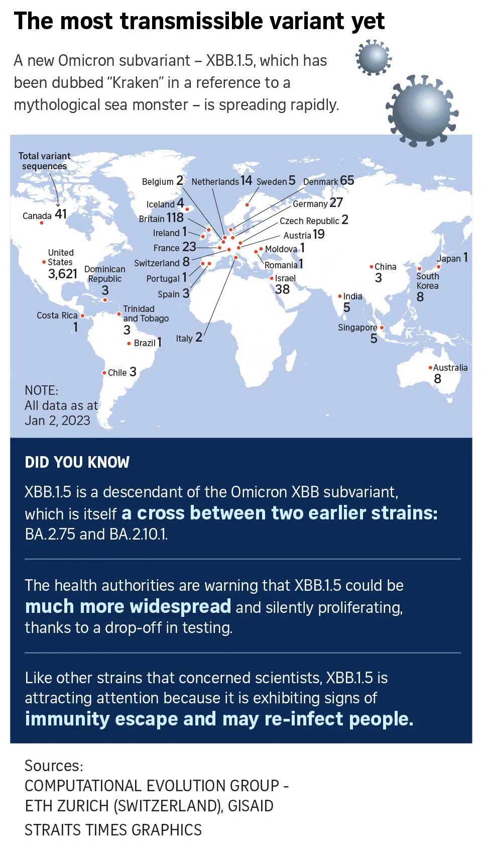 XBB.1.5 is “the most transmissible subvariant that has been detected yet”, said the WHO’s Covid-19 technical lead, Dr Maria Van Kerkhove, during a press conference on Jan 4.